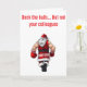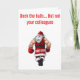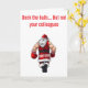 Traga um pouco de humor ousado de férias para os seus cumprimentos com este cartão divertido! Com o texto em negrito “Decore os corredores, mas não seus colegas”, este design mostra uma cena travessa em que um Papai Noel de desenho animado acidentalmente (ou talvez não tão acidentalmente!) nocauteia um de seus elfos. É uma versão leve e irônica do estresse das festas de fim de ano, perfeita para colegas de trabalho, festas de escritório ou qualquer pessoa que aprecie uma boa risada durante a temporada festiva. Espalhe alegria, risadas e um pouco de travessura inofensiva com um cartão que certamente vai se destacar!