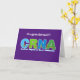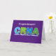 Cartão de cumprimentos para enfermeira anestesiologista (CRNA) "Parabéns". As cores das letras são azul e verde com uma faixa de ritmo cardíaco no meio das letras.