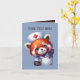 Enfermeira de pico cômodo adiciona mensagem cartão de panda vermelho