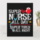 Esta design engraçada de enfermeira é perfeita para uma enfermeira de hospital, enfermeira estudantil de graduação, enfermeira de UTI, enfermeira Registrada RN, Enfermeira Charge ou qualquer tipo de enfermeira que trabalhe como super enfermeira cuidando de pacientes o dia todo, mas super cansada a noite toda! Apresenta "Super Enfermeira O Dia Todo Super Cansada A Noite Toda" um meme engraçado de enfermeira com cardíaco e carinho. Perfeito para a Semana de Apreciação de Enfermeira, Enfermeiras Mês ou formatura na escola de enfermagem!