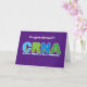 Cartão de cumprimentos do enfermeiro anestesista (CRNA) "Parabéns". As cores das letras são azul e verde com uma faixa de ritmo cardíaco no meio das letras.