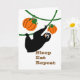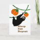 Engraçado Dia de Ação de Graças, Sloth de Ação de Graças, Pumpkins, cartão de saudação de papel. A preguiça-escura-branca está comendo abóboras enquanto pendura sobre uma vinha. Dorme, Coma, Repita as palavras no cobrir. Dentro de mensagem engraçada sobre as direções do banquete de Ação de Lentidão. Arte, imagem e direitos de autor © Shoaff Ballanger Studios.