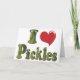 Cartão de saudação engraçado diz, "Eu Amo Picles" com a palavra Picles em uma tipografia de picles. Faz um ótimo presente para o amante de picles na sua vida!