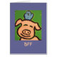 Cartão engraçado de BFF com porco e pássaro. Leia o interior para um riso
