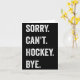 Cartão Engraçado, desculpe não poder hóquei, treinador do