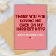 Celebre sua mãe com um cartão engraçado e sincero do Dia das Mães que ela nunca esquecerá. Este cartão imprimível é perfeito para expressar gratidão à sua mãe por amá-lo(a) mesmo nos dias mais difíceis.