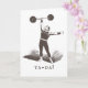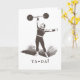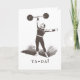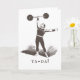 Cartão engraçado do Dia dos Pais com ilustração de homem forte de circo antigo com humor. Citações personalizadas customizadas leem-se como: "ta-da!" e Feliz Dia dos Pais ao melhor pai. (Você está arrasando.)