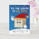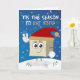Este cartão "´É época de comer tofu" apresenta um desenho de tofu no espírito natalino.