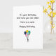 Um cartão de aniversário direto. Com um pequeno ramo de balões coloridos, o texto preto acima diz "É seu aniversário e agora você está mais velho. Aqui está um cartão. Feliz Aniversário". Perfeito para aqueles que gostam de dizer as coisas como elas são.