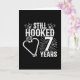 Este divertido design de aniversário de 7 anos de casamento é perfeito para casais que amam pesca e que estão casados há 7 anos e ainda estão presos um ao outro e adoram ir pescar! Ótimo para uma festa de aniversário de 7 anos de casamento para celebrar 7 anos de casamento! Com a citação de aniversário de casamento "Ainda Presos Depois de 7 Anos" com ganchos de peixe em forma de coração com gráfico de pesca em um design de estilo vintage desgastado.