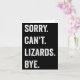 Cartão Engraçado Lizard, desculpa não os Lizards não pode