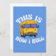 Esta carta engraçada para um motorista de ônibus escolar mostra um ônibus escolar amarelo perto da frase hilariante Isto é Como eu Rolo. Uma legal referência de pop para um motorista de ônibus que gosta de humor moderno. O texto do dentro diz Obrigado por ser um driver de barramento de excelente. Você pode sair ou personalizar com sua própria mensagem.