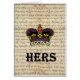 Texto divertido "dela" com uma ilustração da coroa roxa num pano de fundo manuscrito de papel antigo.