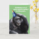 Este velho chimpanzé, vestindo um chapéu de festa, está refletindo sobre seu passado (porque o cartão diz, "Aniversários são um bom momento para refletir sobre o passado..." A dentro do cartão diz, "Pensando bem, esqueça o passado. Os aniversários são sobre o(s) presente(s). Feliz aniversário!" Bom conselho.