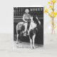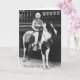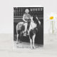Menino vestido de vaqueiro em pônei em ambiente urbano, por volta de 1950, foto b&w.