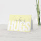 Um simples cartão moderno cheio de gentileza e afeto, este design tem o texto "enviando abraços" em uma combinação de letras em negrito e manuscritas na frente do cartão. O fundo amarelo limão claro é uma escolha de cor popular e adiciona ao visual contemporâneo do cartão. O texto interno é uma expressão atenciosa que pode ser encomendada como escrita ou personalizada com o texto interno desejado. Este cartão não é apenas uma ótima escolha para ocasiões especiais como o Dia dos Namorados, mas também é uma escolha perfeita para enviar um cartão atencioso para alguém que está doente, precisa de um estímulo, ou talvez um familiar ou amigo que mora sozinho ou em uma casa de repouso. Tantas possibilidades para alegrar o dia de alguém com este simples cartão.