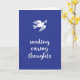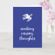 Enviar cartão de simpatia por pensamentos carinchosos é um simples e sincero cartão de compaixão não-religiosa com uma pomba branca de motivos de paz num fundo azul. A frente diz, "enviando pensamentos de carinho" em uma fonte de script. O texto do dentro, que você pode editar se quiser, diz, "Nossa mais profunda simpatia durante esse período difícil." Um cartão de condolências secular envia uma mensagem de pensamento que é apropriada para muitos tipos diferentes de pessoas e circunstâncias.