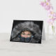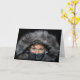 Uma foto de uma garota espreitando através de uma parka de cinzas de capuz, com apenas seus olhos mostrando, é o assunto do meu cartão de saudação "Enviar Aniversário Quente Deseja Seu Caminho".
