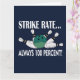 Cartão de Saudação da Equipe de Strike do Jogo de Boliche projetado por Nisha Prabhu. Apresenta um pin de boliche e uma bola de boliche com a tipografia "Taxa de Strike... Sempre 100 Por Cento!". Marque um strike com o nosso Cartão de Saudação da Equipe de Strike do Jogo de Boliche! Perfeito para enviar bons votos aos seus companheiros de boliche ou expressar seu amor pelo esporte, este cartão é uma maneira certeira de alegrar o dia de alguém. Apresentando um design divertido e atraente que captura a emoção da pista de boliche, este cartão de saudação é uma ótima escolha para qualquer ocasião. Seja para celebrar um aniversário, parabenizar um amigo ou simplesmente dizer olá, este cartão é a maneira perfeita de espalhar um pouco de alegria temática de boliche. Mostre sua paixão pelo jogo e cause