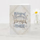 Versículo da Bíblia de Salmos 84:5, "Bendito é o homem cuja força está em ti." Cartão do Dia dos Pais em azul e marrom, tipografia moderna. O versículo interno pode ser alterado para qualquer ocasião.
