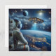 Ilustração Ai de um astronauta observando OVNIs voando no espaço sobre a terra.