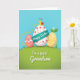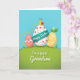 Este cartão de cumprimentos mostra três formas de ovos superdimensionadas repousando sobre uma colina verde ondulada sob um céu azul brilhante, com um clima suave e amigável que parece um abraço de primavera 🌷. O ovo do centro é branco com sotaques florais vermelhos e pequenos pontos laranja, e uma fita azul-turquesa estende-se sobre ele com “Feliz Páscoa” escrito em letras brancas e fluidas. À esquerda, está um ovo rosa-coral decorado com um padrão de zigue-zague acentuado, e à direita um ovo amarelo ensolarado com listras finas e arrumadas. Empoleirada no topo do ovo do meio está uma pequena criatura amarela com costas em espiral e antenas com pontas em coração, inclinada para frente como se observasse a cena com atenção carinhosa 🐰. Um cordão trançado dourado fino sai dessa criatura e envolve o ovo coral, como um elo suave e afetuoso entre eles. No ovo da direita, uma pequena criatura verde com orelhas compridas e detalhes em folhas senta-se perto da superfície, como se se juntasse silenciosamente com uma presença leal e companheira.
