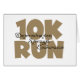 Texto bronzeado, com 10K de RUN e texto preto, com a seguinte redação: Determinação da Resistência na execução de T-shirts, capuzes, botões, bolsas, canecas, adesivos e outros produtos para qualquer pessoa que esteja a treinar ou já tenha gerido um 10K!