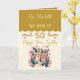 Celebrar 50 anos felizes juntamente com este doce cartão de aniversário de casamento do ouro para a sua maravilhosa esposa! Apresentando duas corujas adoráveis tocadas lado a lado, este charmoso design captura a alegria de um amor que resistiu ao teste do tempo. Com a mensagem sincera "50 anos felizes juntos" na frente, é perfeita para compartilhar um sorriso e uma memória no seu dia especial. Quer você esteja relembrando o passado ou sonhando com o futuro, este cartão de aniversário bonito é uma maneira adorável de dizer "Tenho tanta sorte de ter você como minha esposa" depois de todos esses anos. Um perfeito guardião para o seu 50º aniversário! Dourado / Rosa