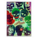 Equipe do Esquadrão Suicida. Representações do crânio gráfico de Deadshot, Harley Quinn, The Joker, Flag de Rick, Enchantress, Boomerang, El Diablo, Croc Assassino, Katana e Slipknot.