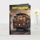 Cartão esqueletos montando carro a cabo vintel feliz hall