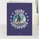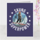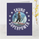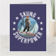 Imagem engraçada de esportes de esqui no inverno, mostrando gráficos de montanha e uma mulher no esqui, e o ditado: esquiar é minha superpotência e pequenas estrelas. Este é o presente perfeito para todos, que adoram esquiar, montanhas e esportes de inverno.