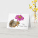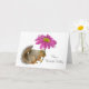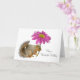 Um esquilo segurando uma grande flor rosa. Personalize este cartão de aniversário.