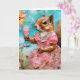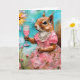 Cartão Esquilo com um vestido cor-de-rosa e uma bebida