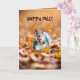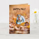As cinzas bonitas esguicham-se com uma bolota na floresta do outono para o Happy Fall. Todo texto é editável.