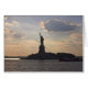 Estátua da liberdade mostrada em silhueta pelo sol do fim da tarde