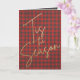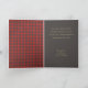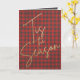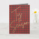 As palavras 'Esta é a temporada em letras de ouro cômico em um padrão de xadrez de búfalos vermelho e cinza, este cartão de saudação de Natal dobrado apresenta sua personalização e saudação no dentro. CORRESPONDENDO a itens na nossa coleção.