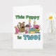 T-shirts, segundo aniversário de papoila, fatos-macaco, ímanes, cartões, sacos de tote, botões de segundo aniversário e mais com velas de aniversário, um adorável cachorrinho marrom, um chapéu de festa e muitas guloseimas de aniversário! O texto diz: "Este Cachorro é 2!".