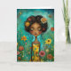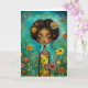 Cartão Estilo de Ilustração de Mulher e Flores Olá Greeti