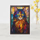 Cartão Estilo de Vitral Gatinho Encantador com Olhos Amar