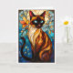 Cartão Estilo Vidro Colorido Gato Charmoso com Olhos Azui