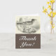 A frente deste obrigado de estilo vintage que você saúda o design de cartão apresenta a mensagem apreciativa "Obrigado!" em script como texto, juntamente com uma representação de um pássaro. O dentro apresenta uma mensagem editável de obrigados. Um cartão como este poderia ser usado para obrigado de alguém que fez algo especial.