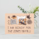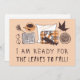 Este aconchegante design de outono encapsula perfeitamente a expectativa e o calor da estação com a frase "Estou Preparado para as Folhas Caírem!". O texto é escrito em uma fonte divertida e desenhada à mão que complementa as ilustrações convidativas e caseiras acima dele. O design apresenta uma coleção de itens essenciais de outono confortáveis: uma xícara de café fumegante, um livro aberto, um par de óculos, uma almofada fofa, um cobertor xadrez e uma folha caída, todos dispostos em uma composição encantadora e relaxada. A paleta de cores suaves e quentes, dominada por tons de bege, marrom e laranja, evoca os sentimentos pacíficos e nostálgicos do outono.