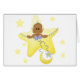 Os auges adoráveis de um bebê do afro-americano para fora do interior de uma estrela amarela grande e dos lotes de outras estrelas e de uma lua cercam-no. Você pode personalizar estes convites do chá de fraldas no ponto!