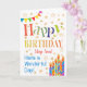 Um Cartão de Aniversário colorido, baseado em texto, para um Filho Passo, com Bolinhas Bunting, velas brilhantes de bolo de aniversário listradas e borrifadas com estrelas de efeito ouro. O texto padronizado diz: "Parabéns" e há também "Tenha um dia maravilhoso!" em letras azuis (NB, as estrelas e contornos do efeito ouro serão como vistos e não serão impressos em tinta metálica.)