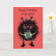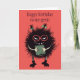 Cartão de aniversário de geek com teste personalizável que apresenta uma ilustração divertida de um inseto mau que adora ler. Ela tem um sorriso, fitas e óculos. Segurando seu livro, ela está ansiosa para começar. Este cartão de amante de livro é excelente para uma garota geek.