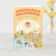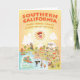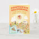 This greeting card is a spectacular cartoon of Southern California – Los Angeles, Anaheim, Long Beach, San Diego. This charming scene has it all – a surfer hangs ten while a mermaid lounges on a rock, a killer whale leaps out of the water, a muscular beach couple both flex to impress, zoo animals wait for tourists, a bull smashes into a bull fighter, and much more…