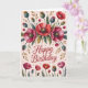 "Celebre um dia especial com esse elegante cartão de aniversário, com papoilas vermelhas e delicados detalhes florais. O pano de fundo cor-de-rosa suave e o intricado design oferecem um toque sofisticado, perfeito para aqueles que apreciam a beleza do eterno e o charme da natureza. Seja para um ente querido, amigo, ou colega, este cartão adiciona uma nota graciosa à sua celebração de aniversário, combinando elegância e calor num design espantoso."