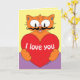Gato Bigode de Desenho Animado, Senhor Gato - Cartão de Boas Festas "Eu Te Amo". Por dentro lê-se - Ontem... Hoje... e Sempre!