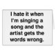 Eu deio-o quando eu estou cantando uma canção e o artista obtem as palavras erradas