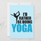 Cartão de Eu Preferiria Estar Fazendo Yoga. Um engraçado cartão de aniversário de professor de yoga com um iogue incrível realizando a pose do dançarino acima de lindas letras azuis. Um presente de instrutor de yoga fofo do seu estúdio ou aluno. Personalize com seu próprio texto ou deixe como DESFRUTE DE UM SAVASANA MARAVILHOSO NO SEU ANIVERSÁRIO.